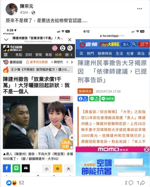 → wish8042 : 極大機率大牙不起訴結案,然後判決書裡頭提到間接認 07/24 20:40