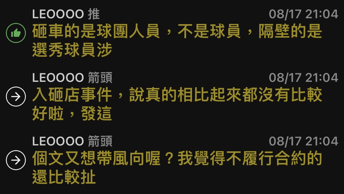 推 jus82120jk : 有回覆不錯了,砸車塞鋼釘聯盟連個屁都沒放08/25 09:00