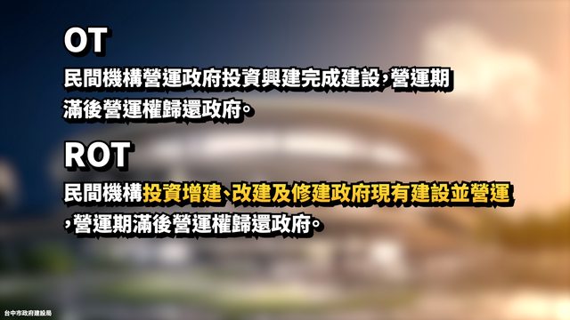 只完成台中巨蛋的建築物本體,並且把興建模式從OT改成ROT,也就是民間機構投資增建、