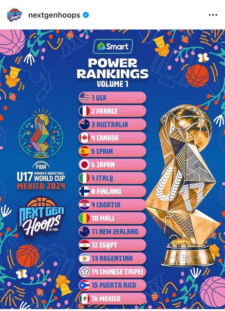 FIBA發布U17女籃世界盃的power ranking -