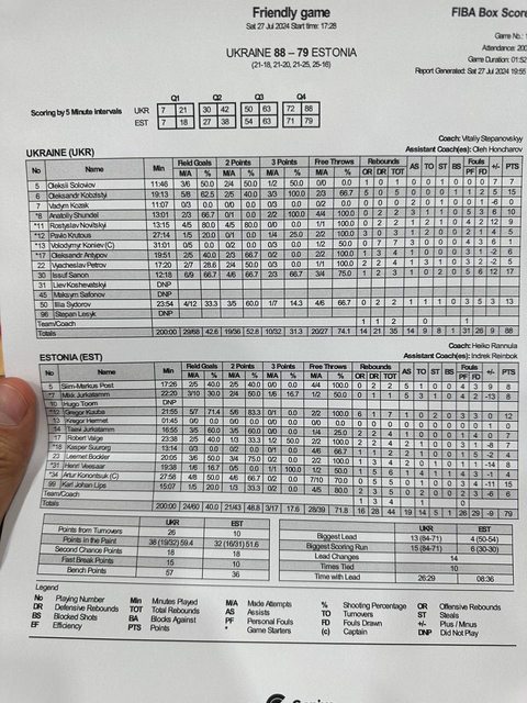以88:79擊敗愛沙尼亞男籃