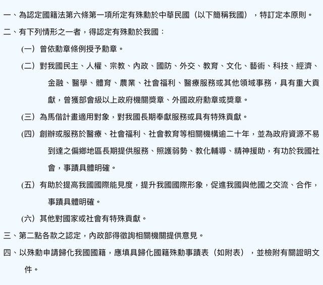 推 littlea : 外國人要入籍台灣是很難的 09/04 10:48