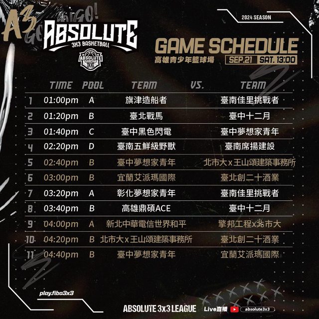 標題[Live] ABSOLUTE 3x3 League | 高雄青少年籃球場