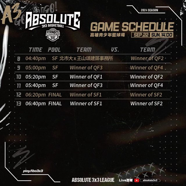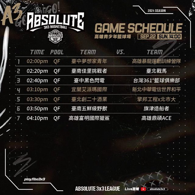 標題[Live] ABSOLUTE 3x3 League | 高雄青少年籃球場
