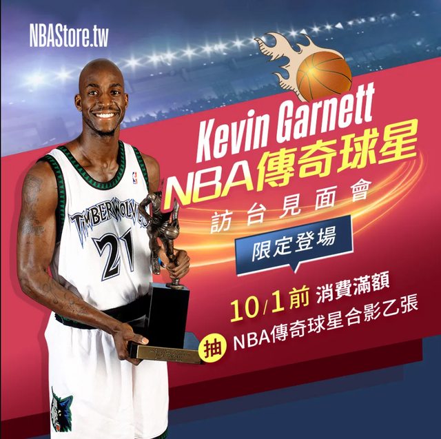 NBA傳奇球星Kevin Garnett繼2006年後再度訪台,他受邀在NBA Store實體旗艦店《NBA