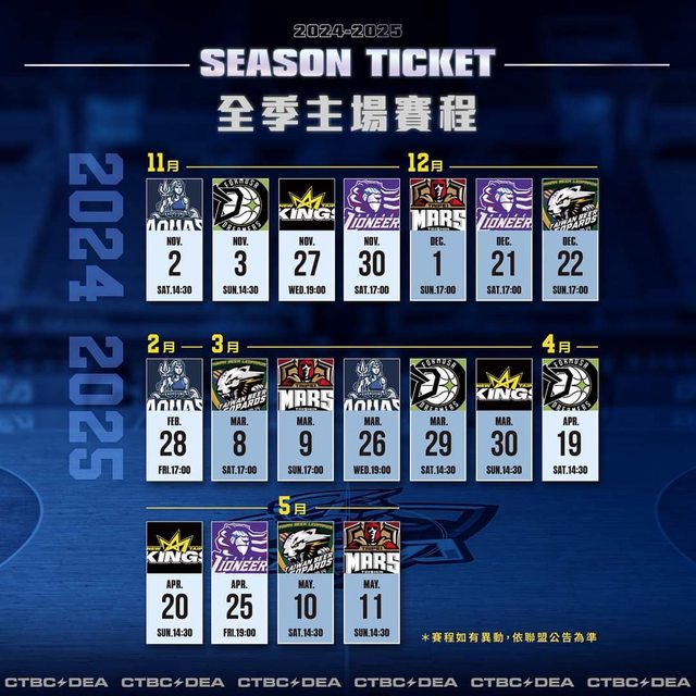 售票場次|新北中信特攻主場18場賽事