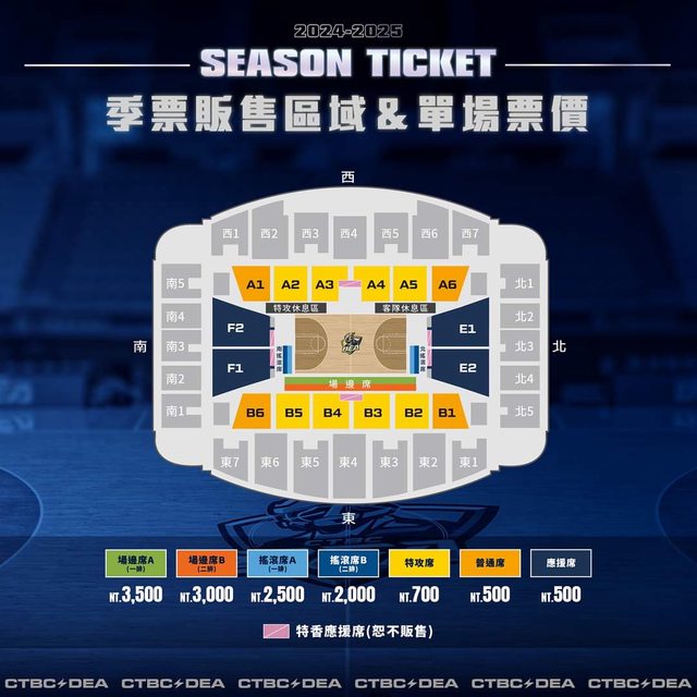 一般季票(特攻席/普通席/應援席):$12,000元/$8,500元/$8,500元