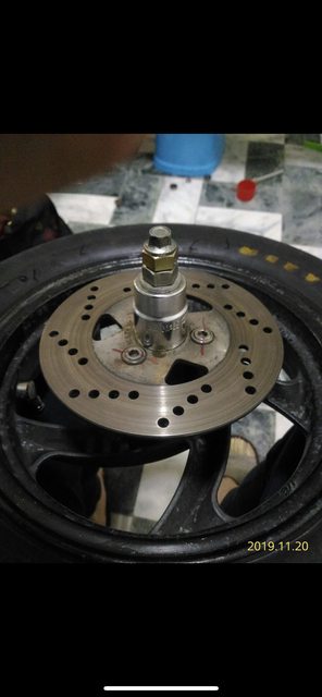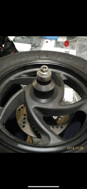 然後拿舊的前輪軸心配上各種套筒跟大墊片