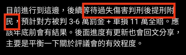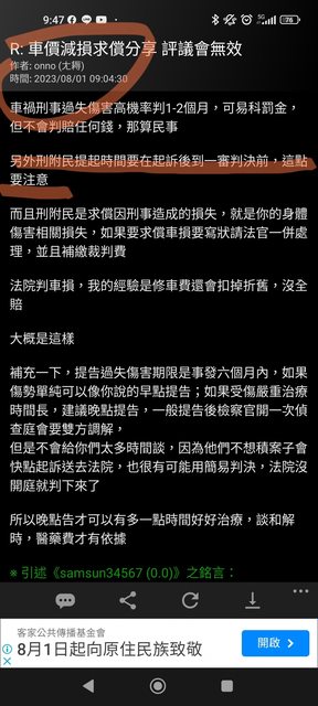→ d8613518 : 所以,跟肇事者在調解會上講好要賠多少就行了嗎?08/02 11:30