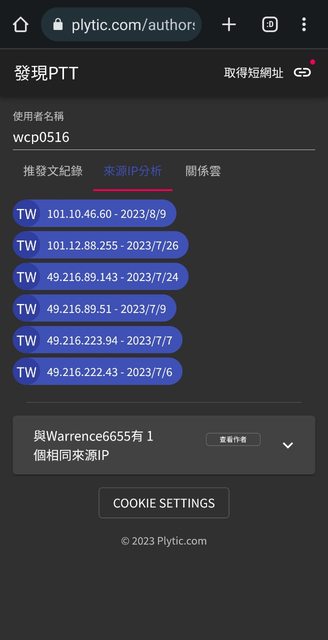 然後他這次發文的IP網段是101.10開頭的