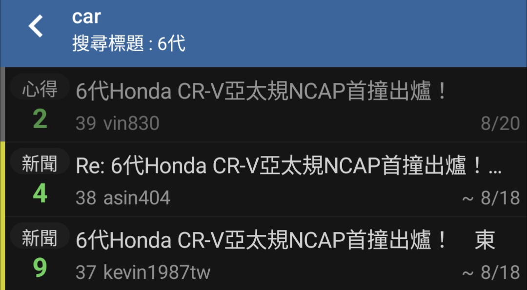 推 horb : CRV5亞太規測撞也是五顆星啊。不意外。台灣是三小規 08/21 11:24