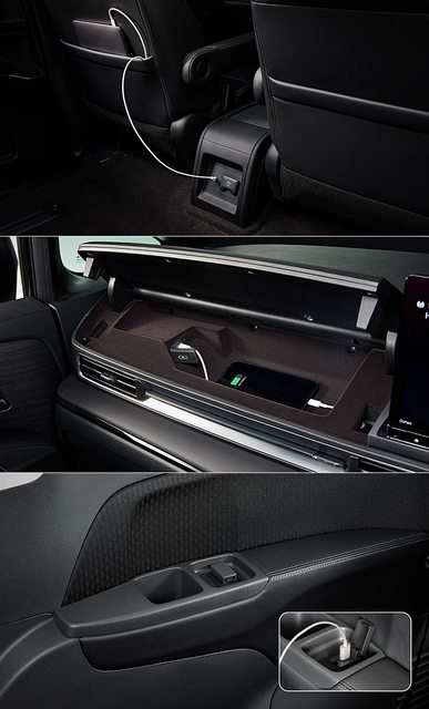 扶手都可選配 USB 充電孔;此外,為了營造豪華氛圍,在前座腳部區域和車門兩側提供了