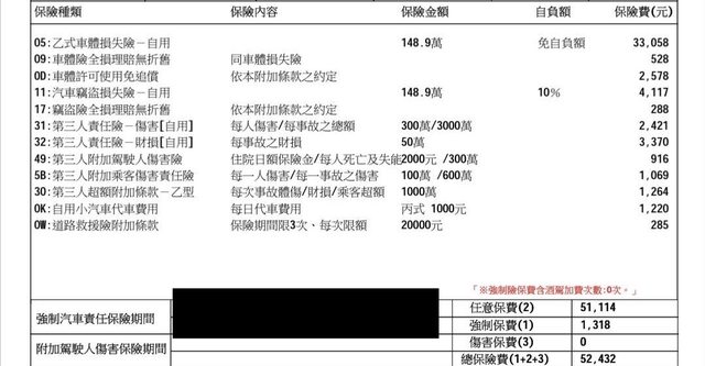 第一次買車,業務提供保單如下,請問各位有什麼建議嗎?有哪些可以刪除的嗎?