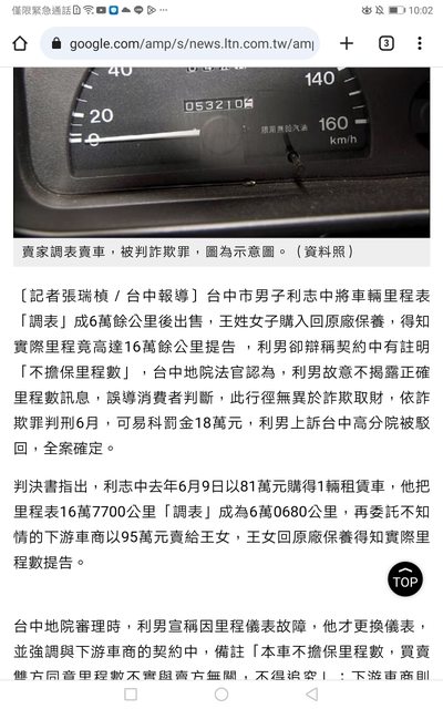 → AHEAD099 : 車商詐欺要成立也要有證據顯示錶是他調的 09/14 12:39