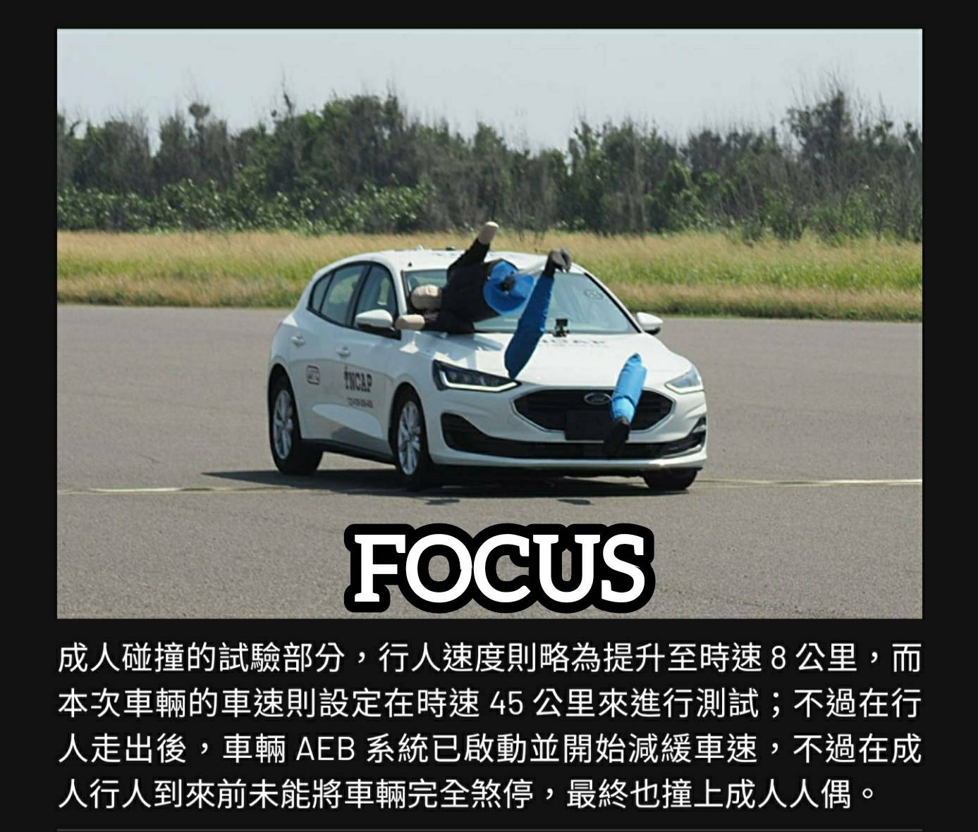 → mark8877 : 杰運汽車測過,AEB 辨識靜止物體,70可煞停,100會 09/15 22:59
