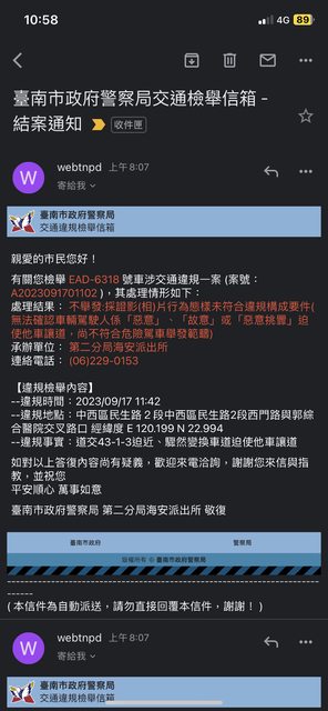 → pepe5566 : 申訴看看應該會改舉發 10/03 15:56