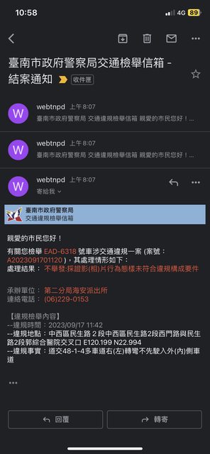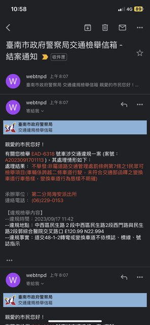 → WeberW : 提醒你,在台南檢舉地址那邊要打好 10/03 15:18