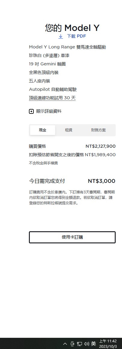 → MangoLi : 但 Model Y 真的推薦買新車 價差太少 10/03 15:25