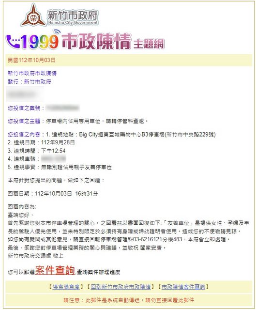 → ccc101419 : 第二次申訴市長信箱已經是新北市交通局停管科回復 10/03 19:06