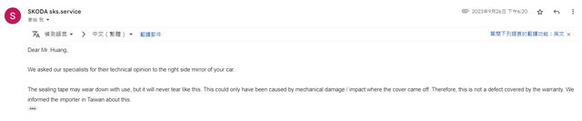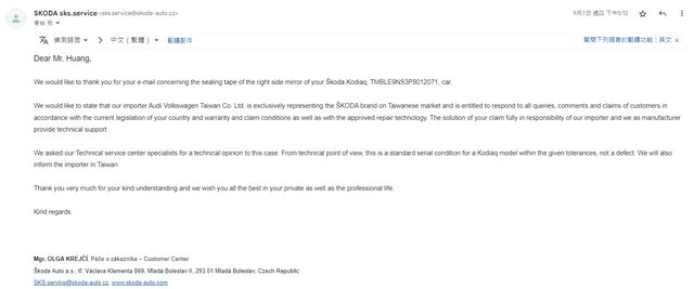 2023/03月,發mail到福斯集團總公司,一路轉回台灣代理處理,