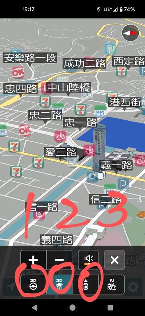 推 ymy7171 : 3D駕駛視角、3D鳥瞰、2D車頭朝上、2D地圖朝北10/29 16:34