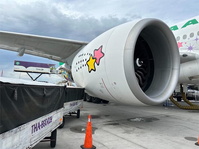 業時,因曼谷地勤公司作業疏失,航機右側發動機外罩遭行李櫃碰撞,造成凹陷及破損,