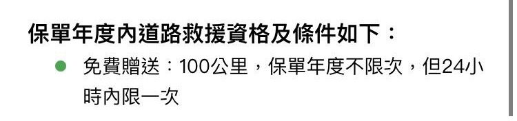 → w71023 : 道路救援部分 富邦沒意外會給一定里程的贈送件 11/14 23:35