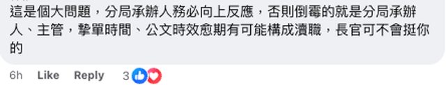 : 這是個大問題,分局承辦人務必向上反應,否則倒霉的就是分局承辦人、主管,摯單時