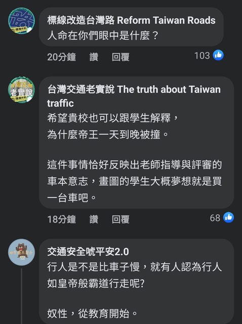 噓 Bozhi : 那些留言的就是笑話 行人地獄就是斑馬線上的事嗎 12/12 12:35
