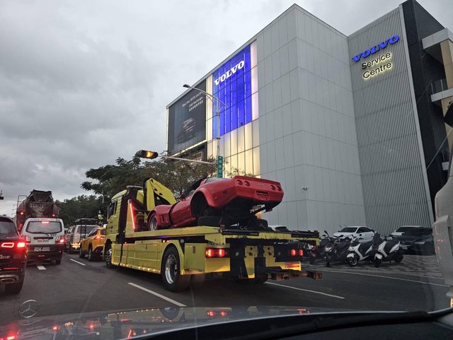 看到拖吊車上的紅色跑車不知道是哪一款