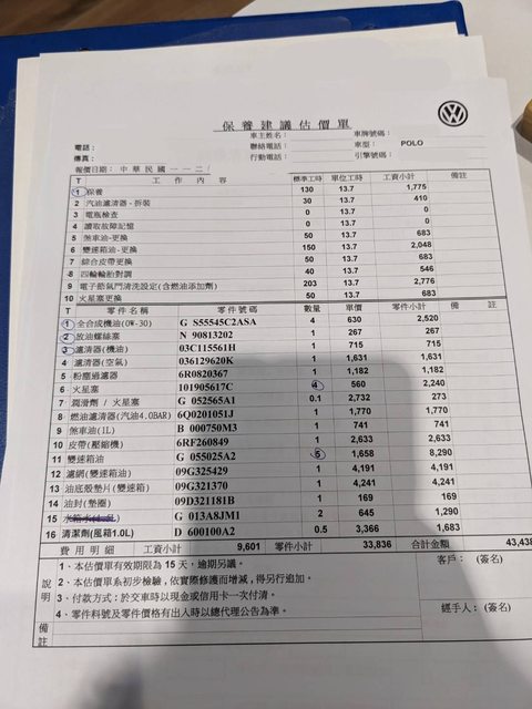 推 gtr9915 : polo就開到這工單 還好家裡附近有專修福斯外廠 12/24 14:05