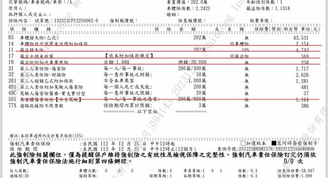 推 august628 : 第三責任傷害調300萬 財損調20萬,乘客險沒載外人 12/25 14:04