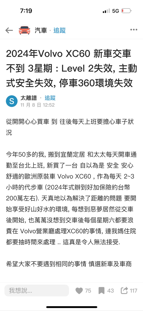推 Usaria: 長輩原本在考慮volvo 我看真的別買了 11/11 17:15