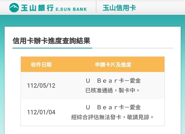 標題[心得] 學生玉山Ubear/兆豐BT21核卡(2023/05)