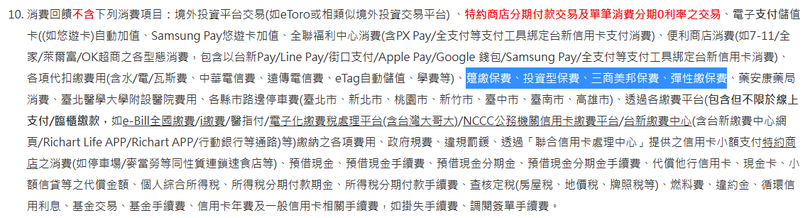 推 BabyWolf : 保險不是本來就無回饋的 很多銀行都不排除 08/22 12:36