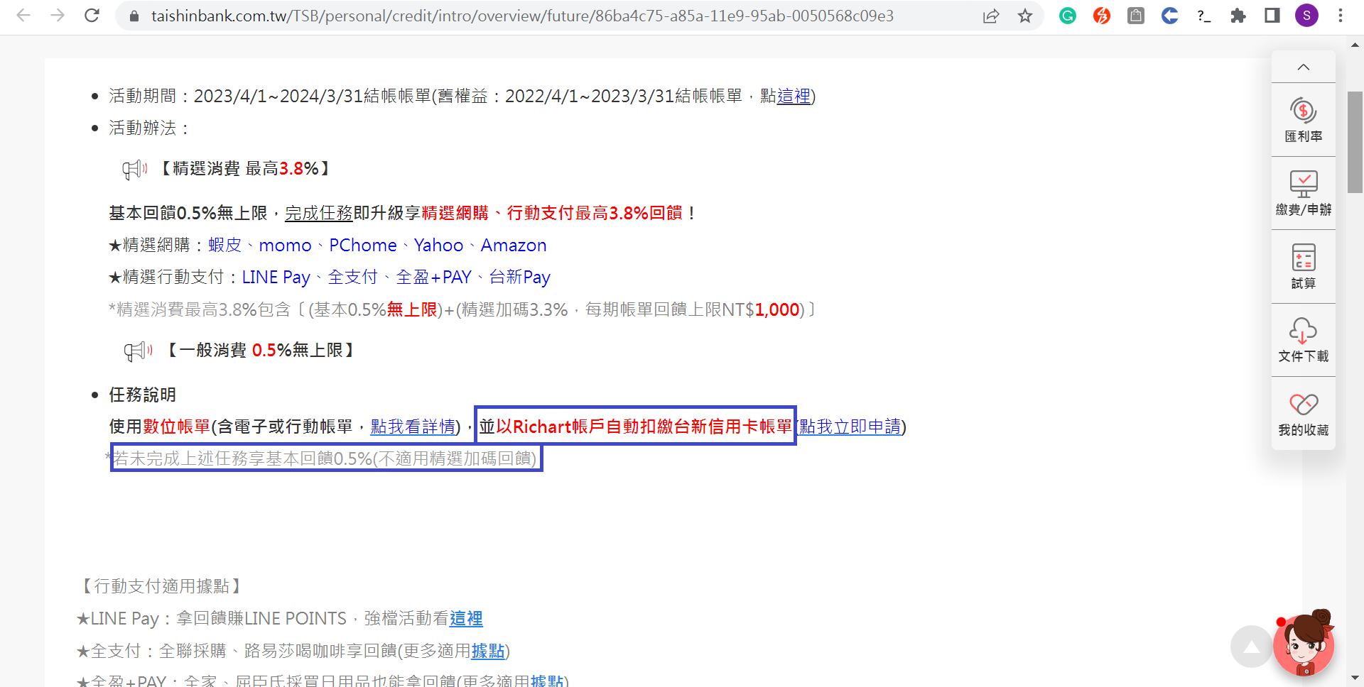 推 loneloneago : 並以Richart帳戶自動扣繳台新信用卡帳單 官網有寫 08/29 14:38