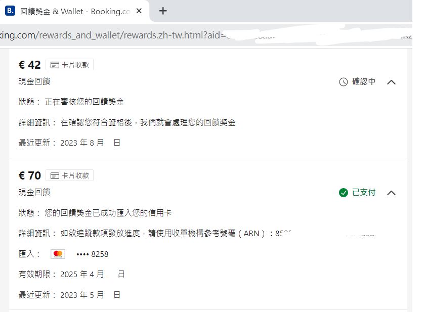 → pikachulai : booking目前看過有4種回饋法,現金回饋存WALLET刷退 09/01 14:11
