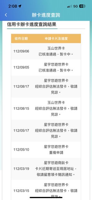 → hangchu : ,再加辦玉山世界卡,要求補件,我沒財力可補被拒絕 09/06 19:27