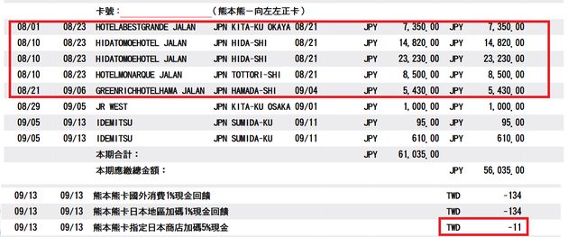 看來是只有JR 1000日圓那筆有認列到,jalan官網的訂房完全沒被算進去