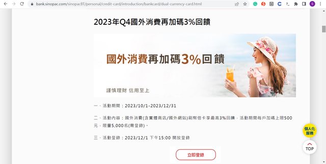 10/1-12/31一樣有國外消費(含實體商店/國外網站)登錄+3%上限500封頂16666元