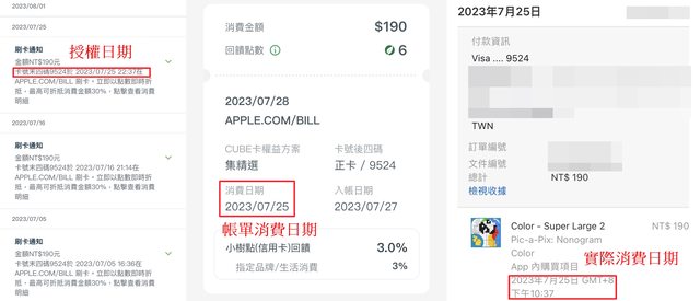 授權日期=8/1 帳單消費日期=7/31 實際消費日期=7/28 7/25 https://i.imgur.com/ypcWVoD.jpg