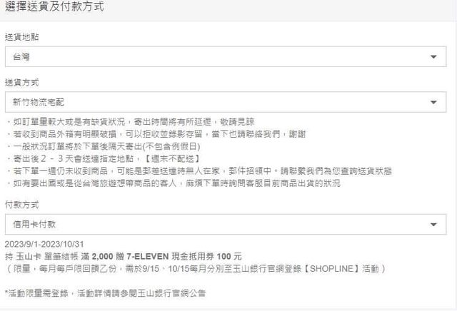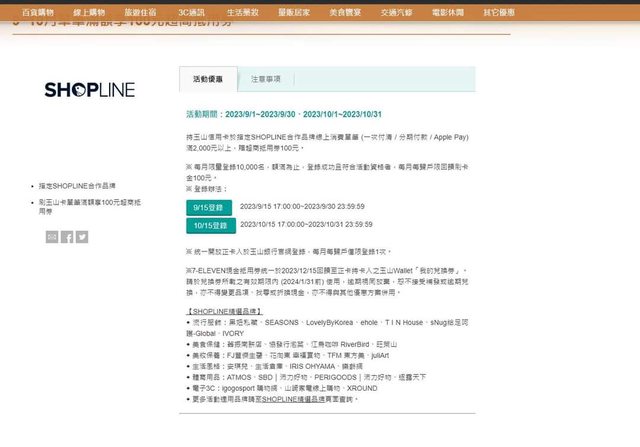 → alex1973 : 持玉山信用卡於指定SHOPLINE合作品牌線上消費單筆 ( 10/16 15:18