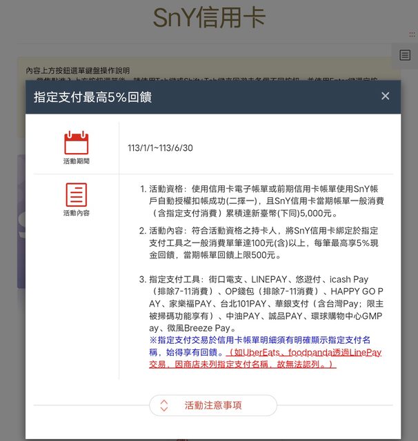 推 Kazamatsuri : 能用指定支付還是可以算低消+單筆100以上的5%啦~ 12/29 11:59