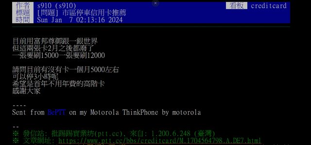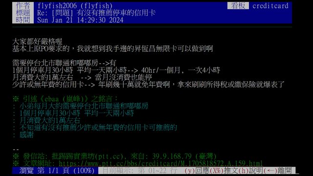 : ※ 文章網址: https://pttbestweb.org.tw/creditcard/M.1705818572.A.159