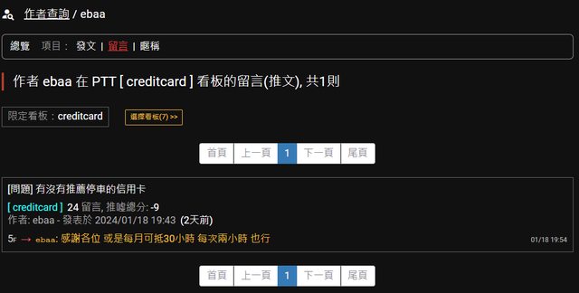 反觀 作者 ebaa 在 PTT [ creditcard ] 看板的發文、留言(推文)