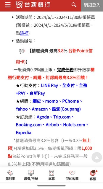 → Usamiakihiko: 玉山當期折抵,台新改點數變成次期了QQ 03/05 17:41