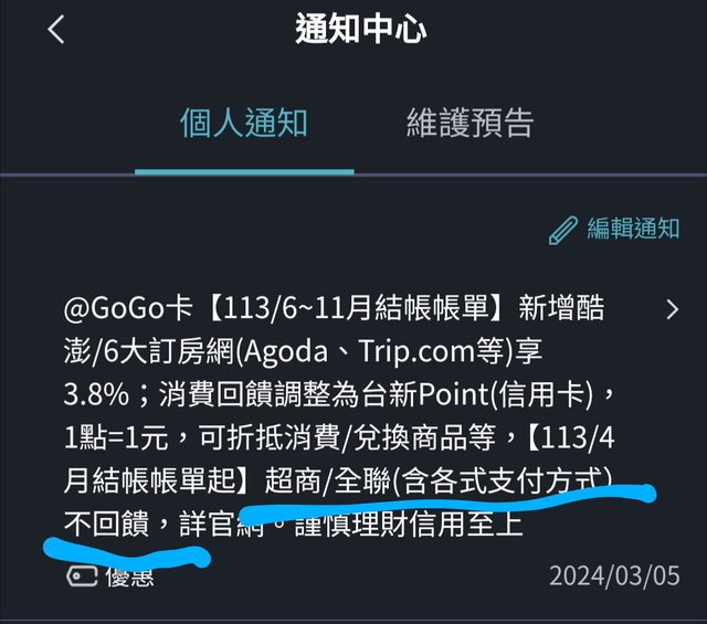 推 Usamiakihiko: 所以4月結帳單開始不回饋全聯跟超商,6月開始都改點 03/05 17:40