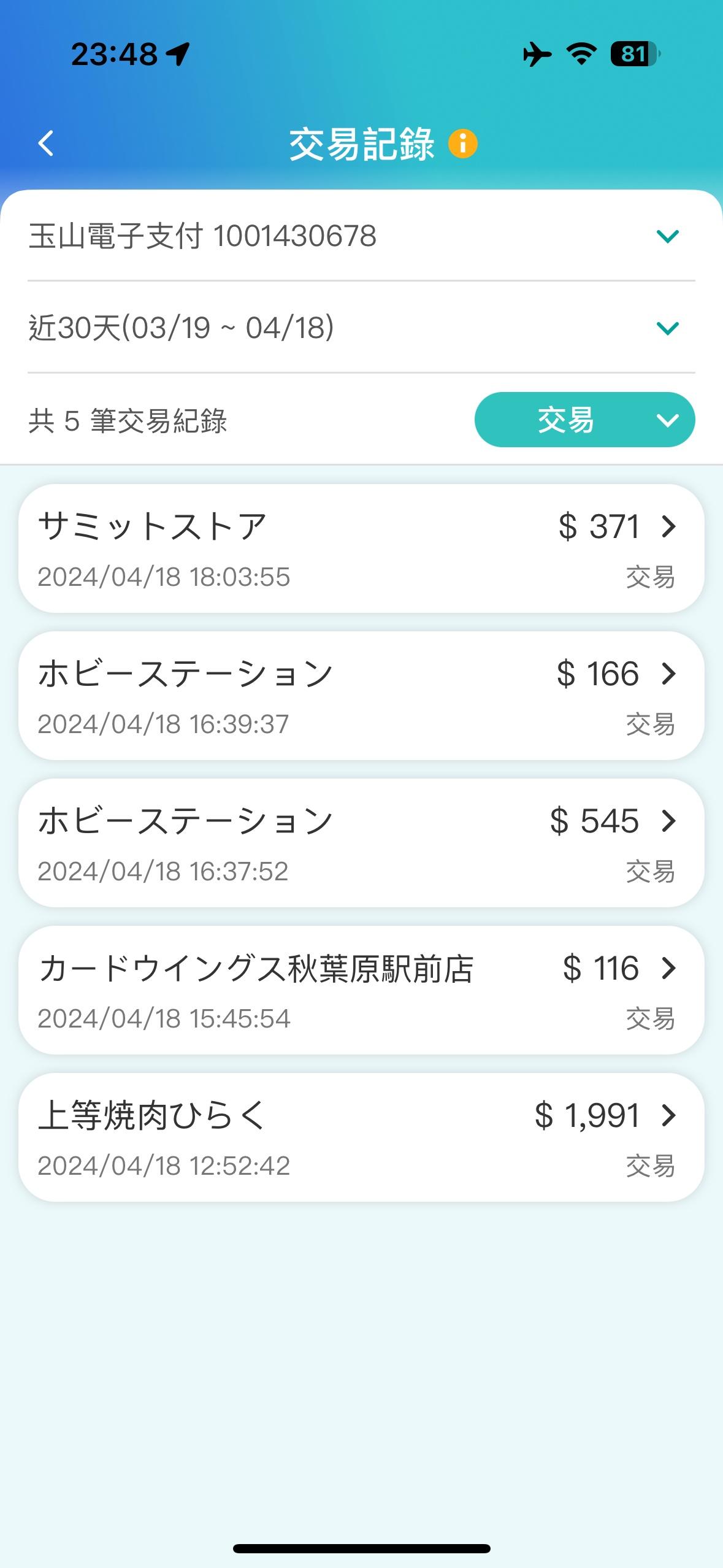 推 gottsuan : 被掃2月底台灣三家支付都支援了 3月初去日本用玉山 04/18 23:58