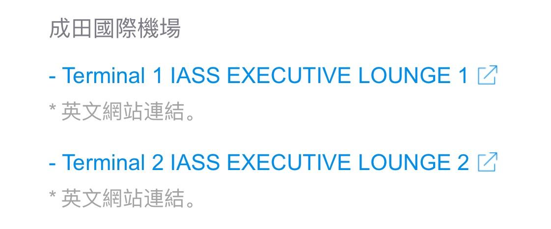 → welly7566 : 成田就只有 IASS EXECUTIVE LOUNGE 1和2 04/22 02:20