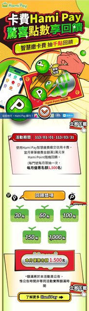 : : Hami Point隨機回饋。(每門號每月限抽一次,每月優惠名額1,500名)
